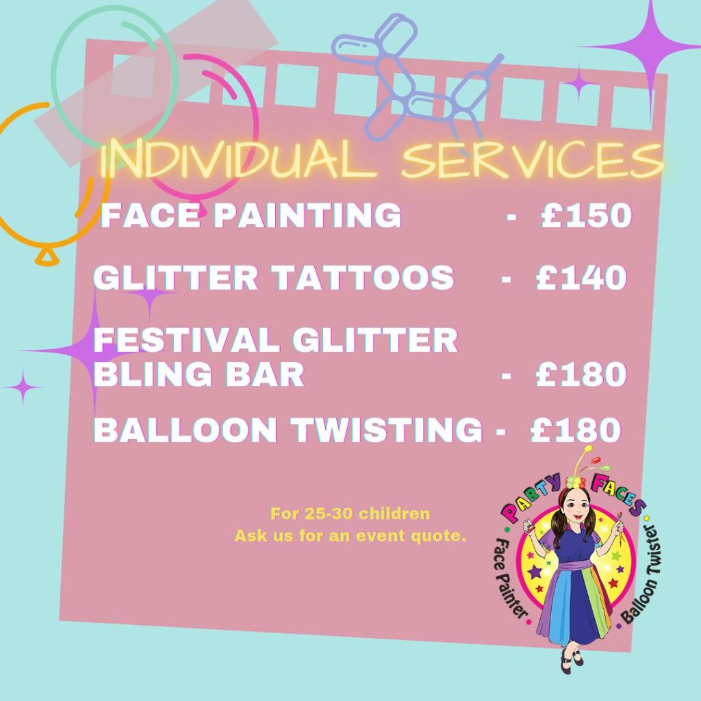FACE PAINTING, BALLOON MODELLING, GLITTER TATTOOS & GLITTER BAR
