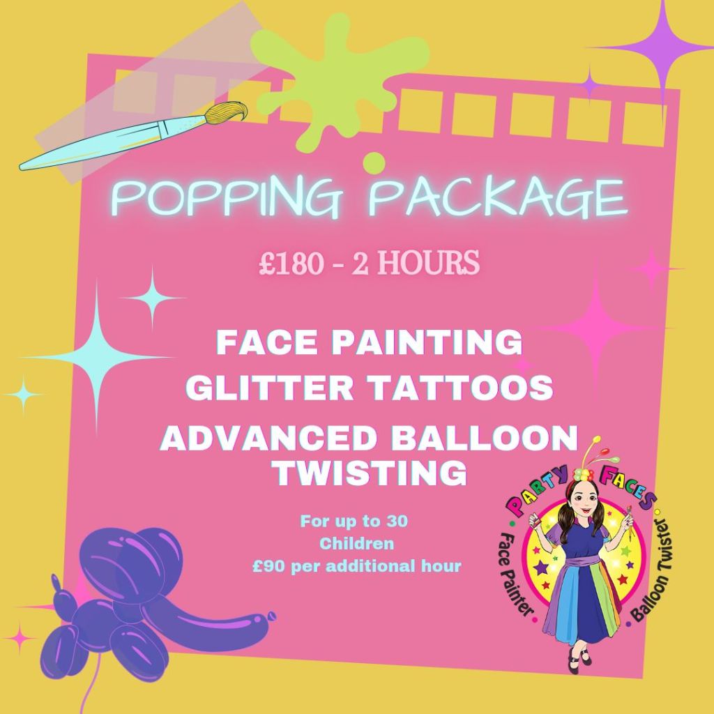 This is our most popular package as it offers a choice for everybody! Your guests will be amazed at our award winning face painting and complex twisted balloons.A great package for those that may not want just face painting but won’t break the bank.Would you like the children to all get a face paint AND a balloon? We can accommodate a full class party in just 2 hours and each child will get a simple balloon and face paint. Thos is a great option for a party favour.Are you looking for a more tween party or adult event? This is the perfect package for weddings, birthdays, garden parties, engagements, and celebrations. Bringing the festival vibe to you.